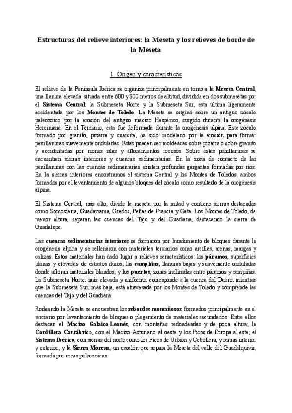 BLOQUE A. El relieve: Formación y características EPÍGRAFE 2. Estructuras del relieve interiores: la Meseta y los relieves de borde de Meseta.
