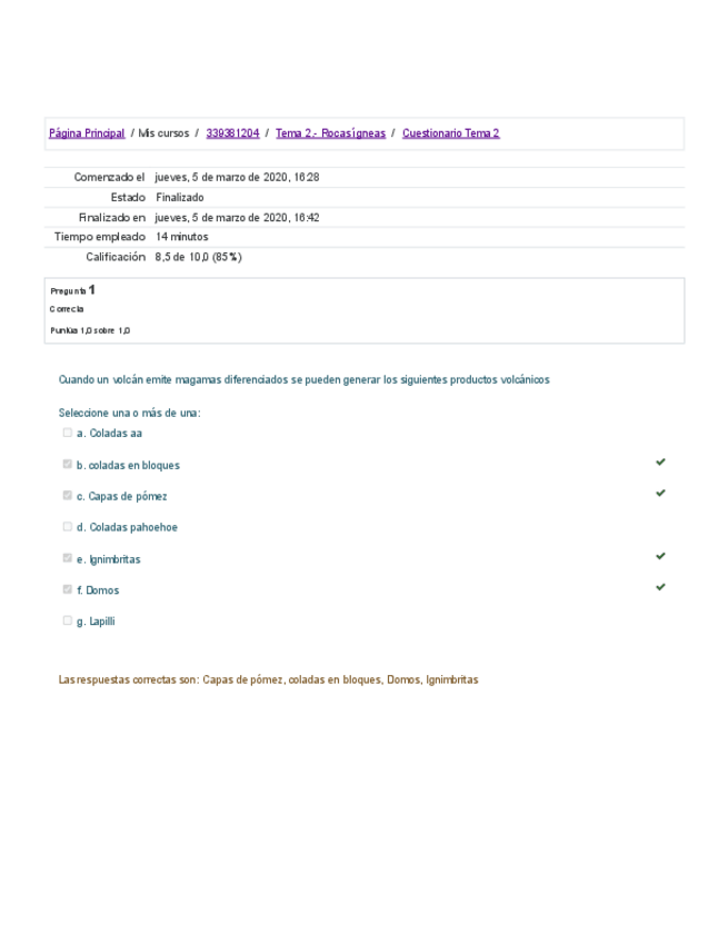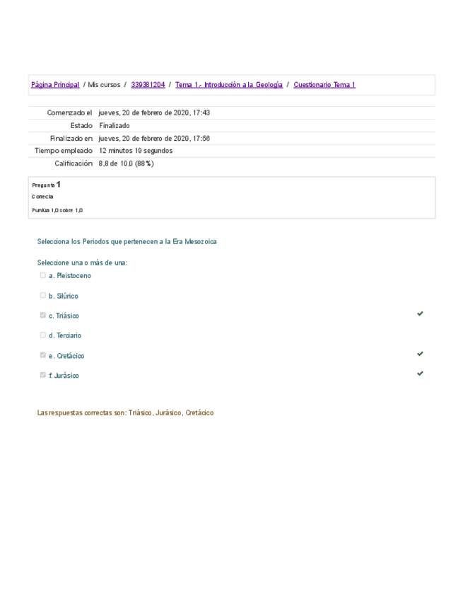Recopilación de los cuestionarios de Geología
