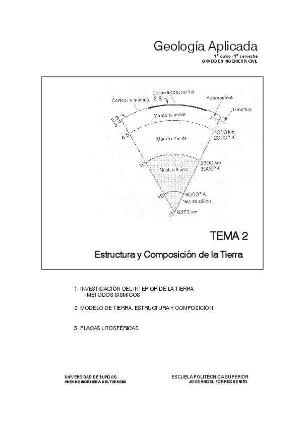 TEMA 1. El Tiempo Geológico. Geocronología y Divisiones. TEMA 2. Estructura y composición de la Tierra. TEMA 3. Tectónica de Placas. TEMA 4. Geología Estructural. TEMA 5. Estratigrafía. TEMA 6. Mineralogía. TEMA 7. Las Rocas Ígneas. TEMA 8. Las Rocas Sedi