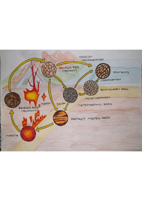 Dibujo del ciclo de las rocas (en inglés, puesto que la tarea debía hacerse así)