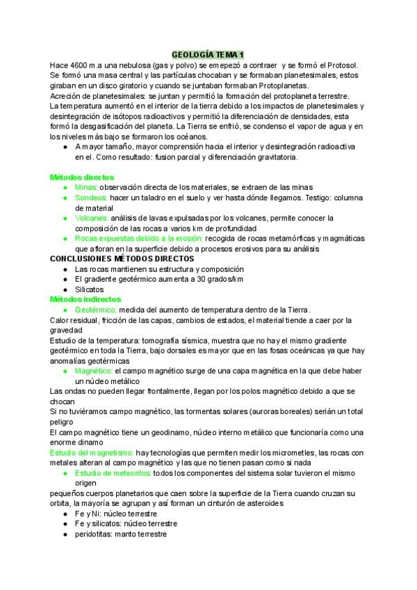 El origen de la tierra, métodos de estudio del interior terrestre, estructura interna de la tierra.