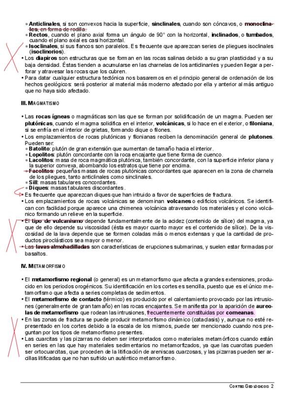 Magmatismo, metamorfismo, deformación de las rocas, cortes geológicos.