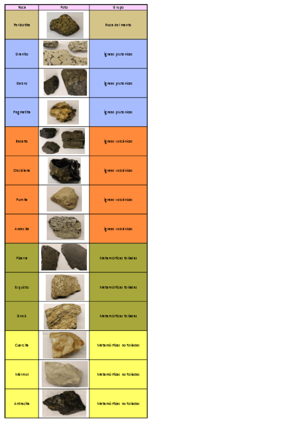 En esta carpeta encontrareis dos PDF. Uno con toda la informacion sobre las rocas y en el otro solo foto, nombre y grupo