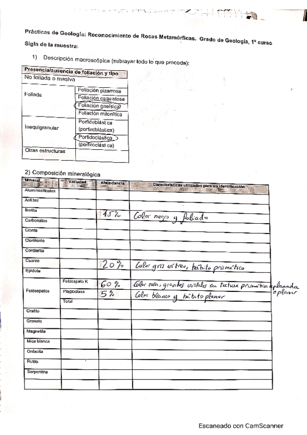 Fichas ígneas y metamórficas