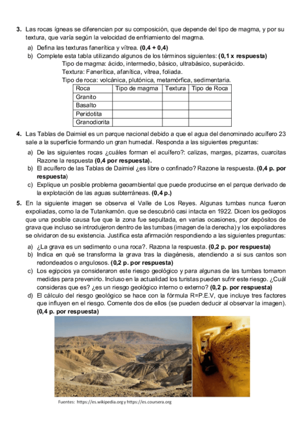 Exámen selectividad geología