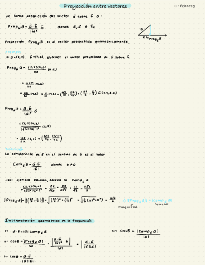 Este es un apunte sobre la proyección entre vectores, vienen algunos ejemplos y definiciones