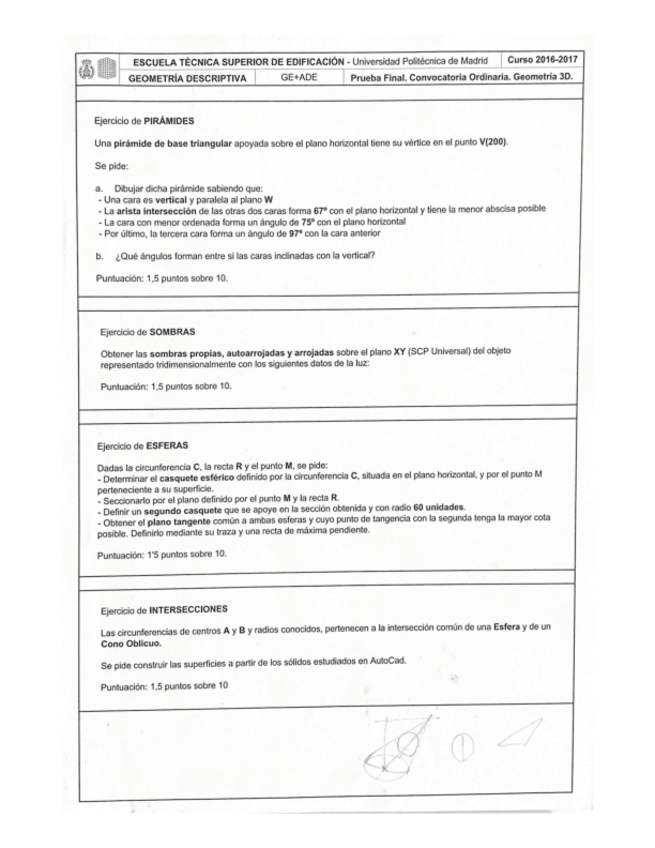 He publicado nuevos examenes de 1º Geometría Descriptiva II: EXAMEN-FINAL.pdf