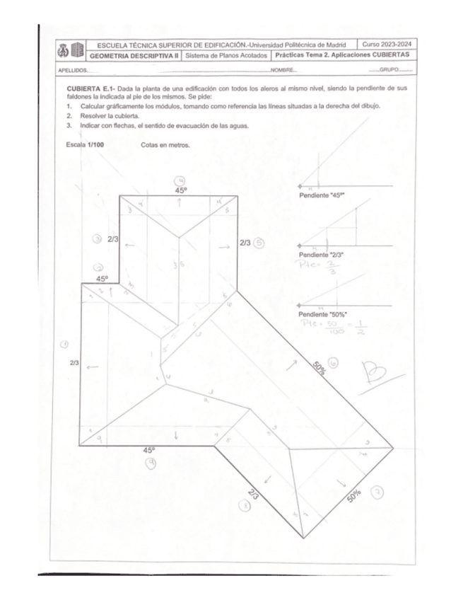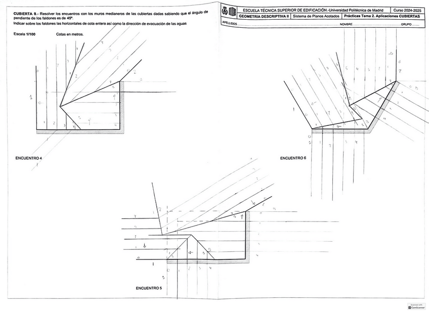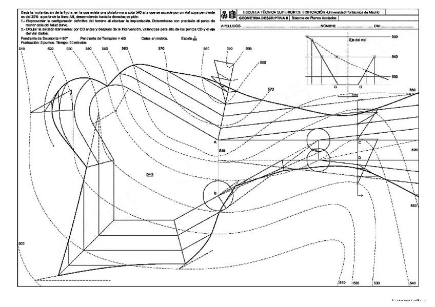 He publicado nuevos examenes de 1º Geometría Descriptiva II: Ejercicios-tipo-examen-CUBIERTAS-Y-TERRENOS.pdf