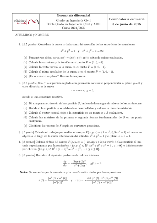 He publicado nuevos examenes de 3º Geometria Diferencial: Examen-Junio-2025.pdf