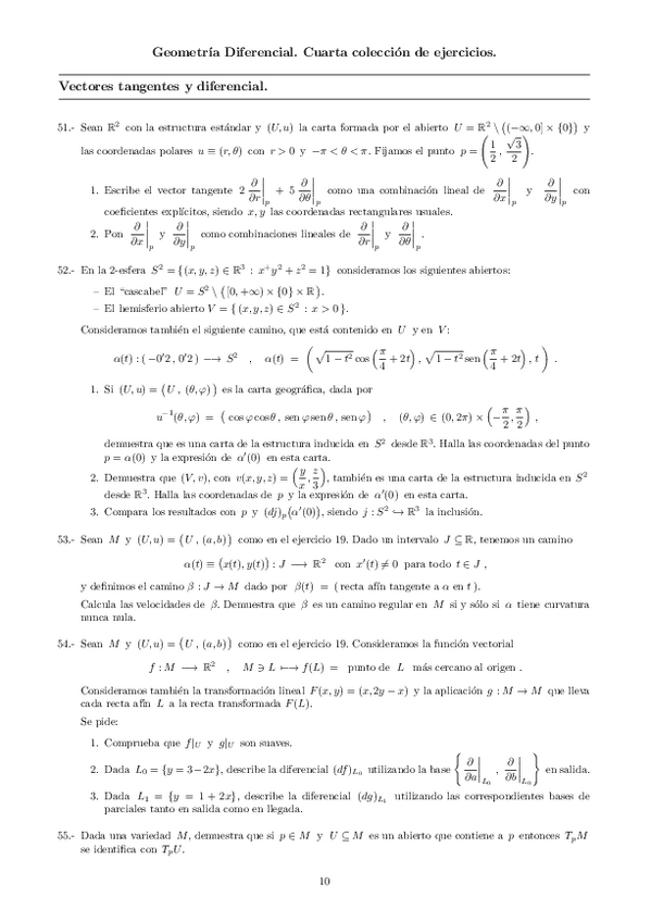 Hojas de Ejercicios Geometría Diferencial