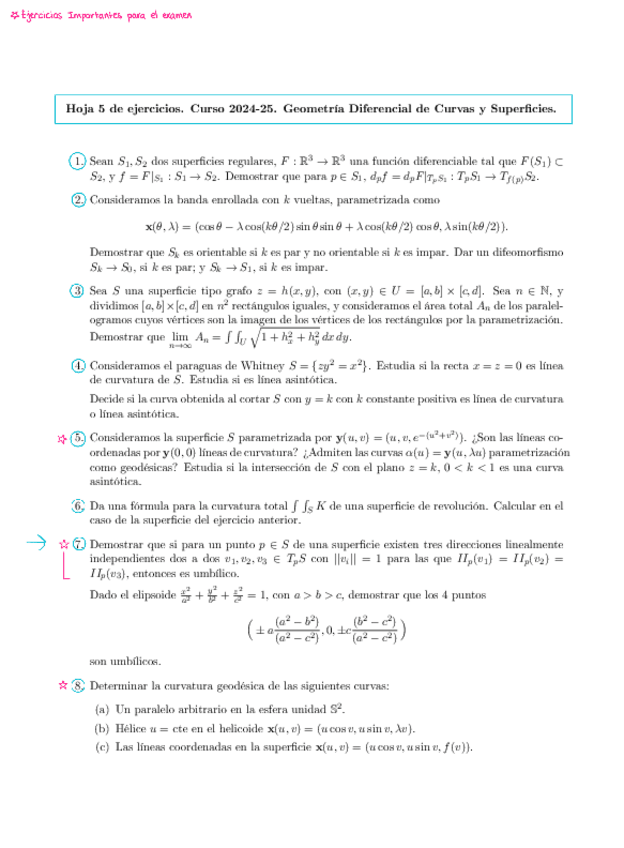 He publicado nuevos ejercicios de 2º Geometría Diferencial de Curvas y Superficies: Relacion-7-2425.pdf