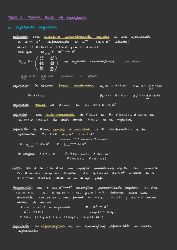 Resumen de toda la asignatura de Geometría Diferencial de Curvas y Superficies con Vicente Muñoz listo para examen.