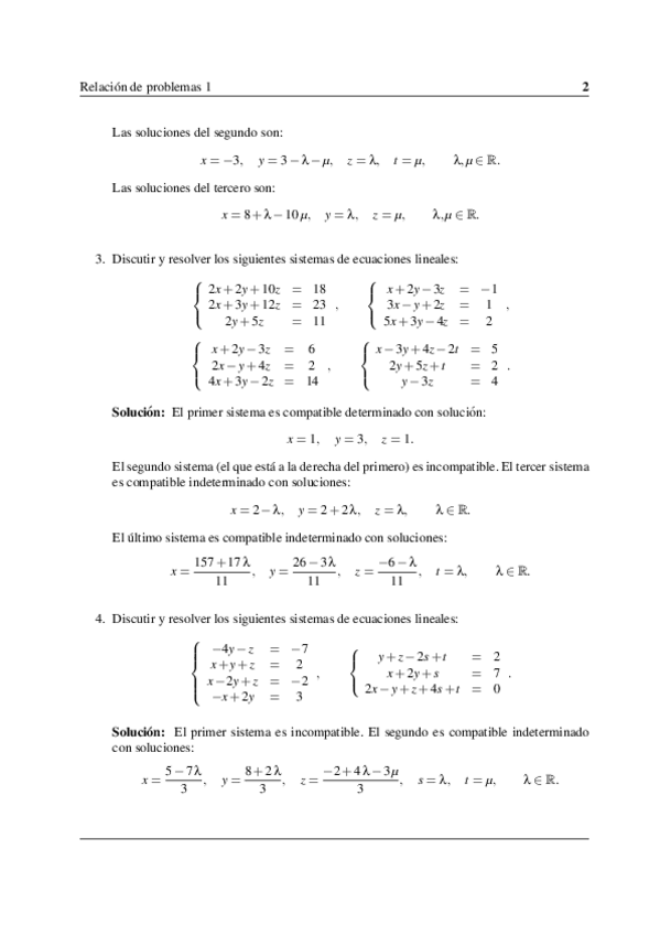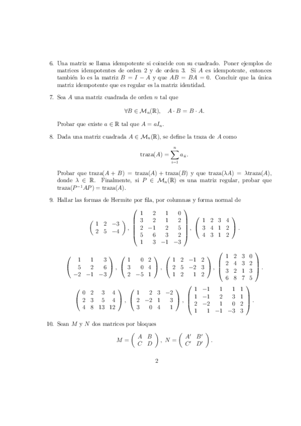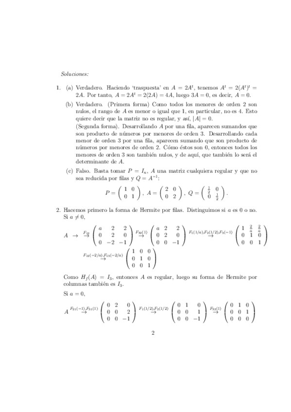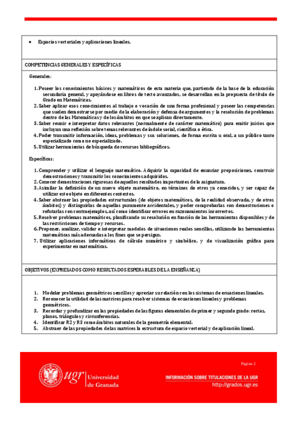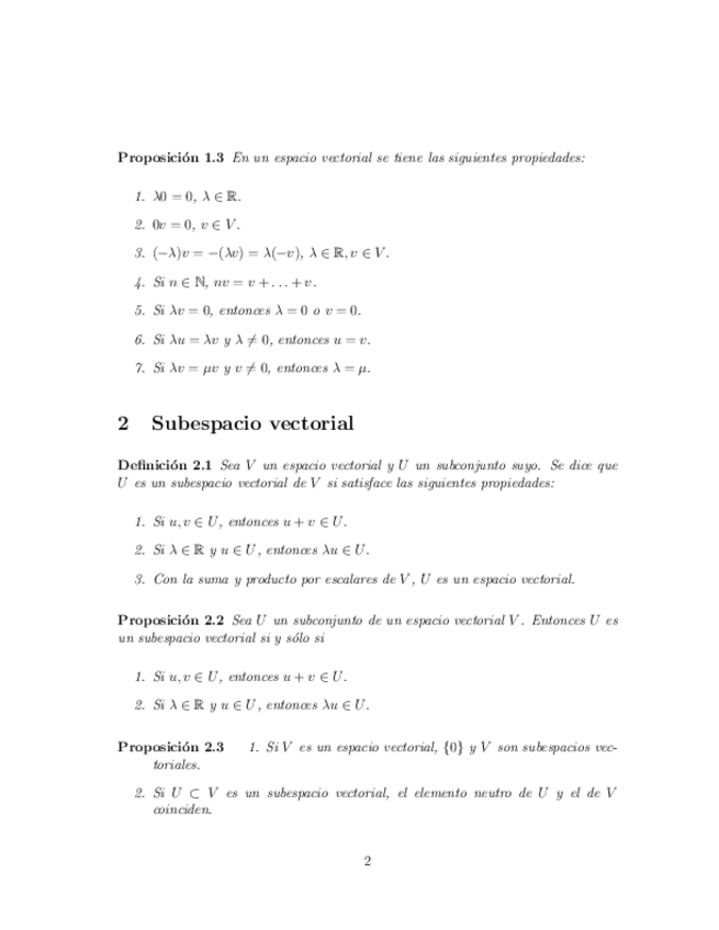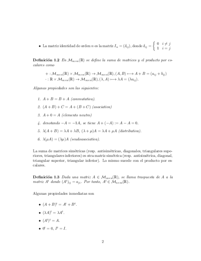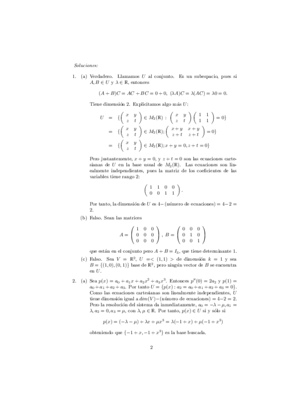 Incluyen el Tema 0 de preliminares (conjuntos y aplicaciones, estructuras algebraicas: grupos, anillos y cuerpos), el Tema 1 de matrices, determinantes y sistemas de ecuaciones lineales, y el Tema 2 de espacios vectoriales, subespacios, sistemas de genera