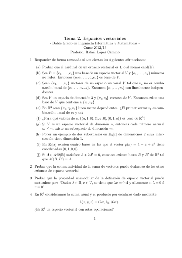 He publicado nuevos ejercicios de 1º Geometría I: EjerciciosGeometriaI.pdf