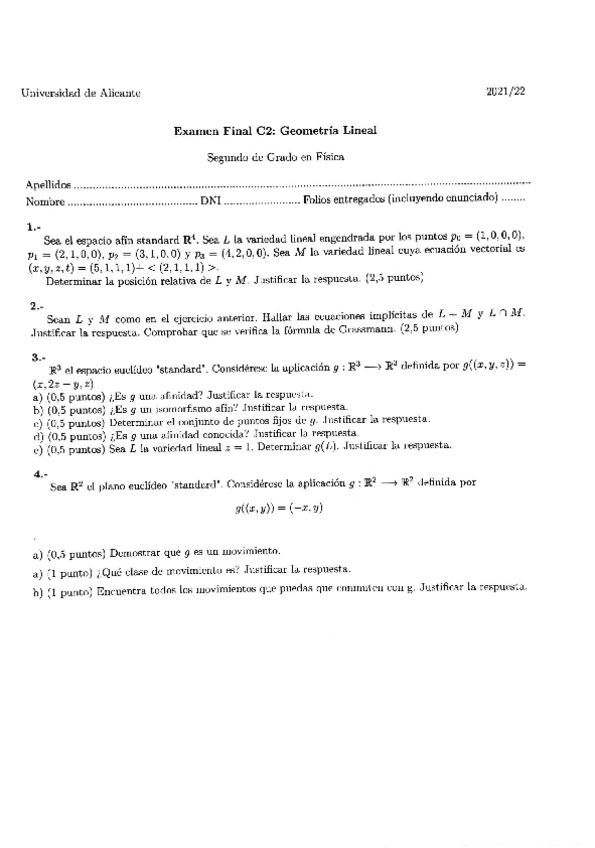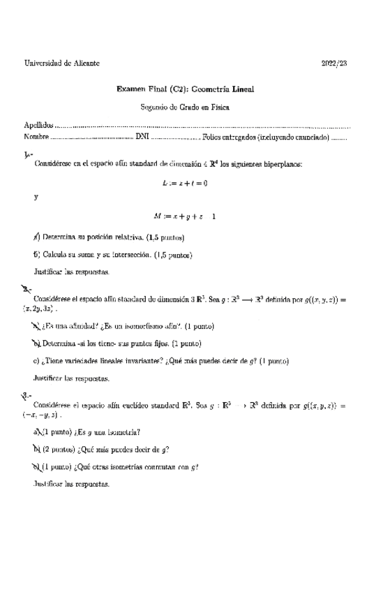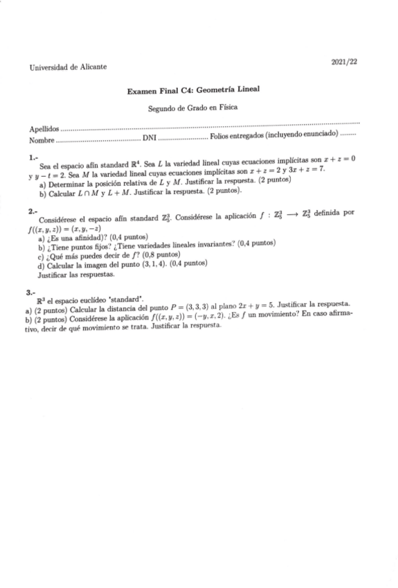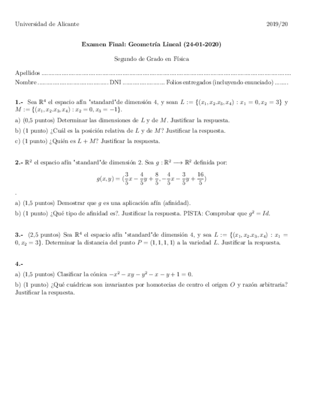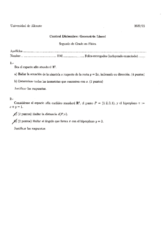 Exámenes Geometría Lineal