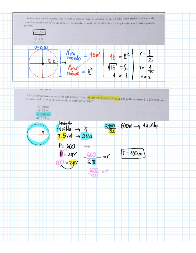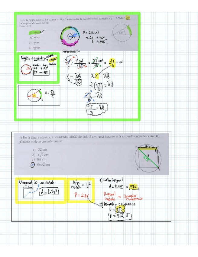 Ejercicios de circunferencia, cuerdas, áreas y perímetro