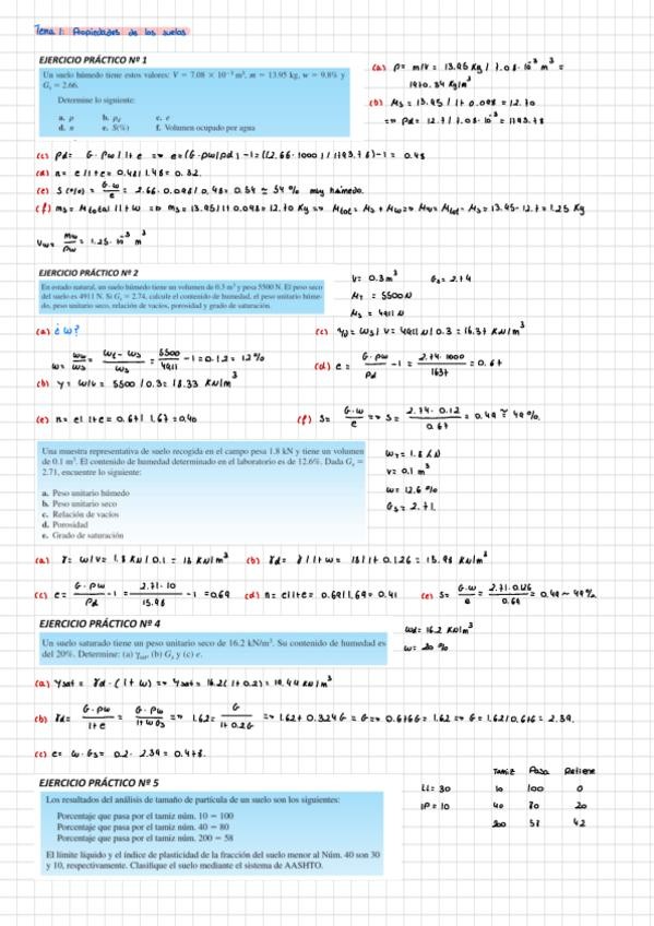 Esta recopilación de ejercicios resueltos de Geotecnia y Mecánica de Suelos incluye problemas prácticos de clasificación de suelos según SUCS y AASHTO , cálculo de propiedades índice , determinación de esfuerzos efectivos y presiones intersticiales , así