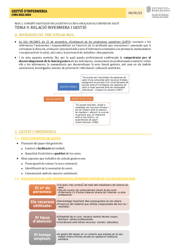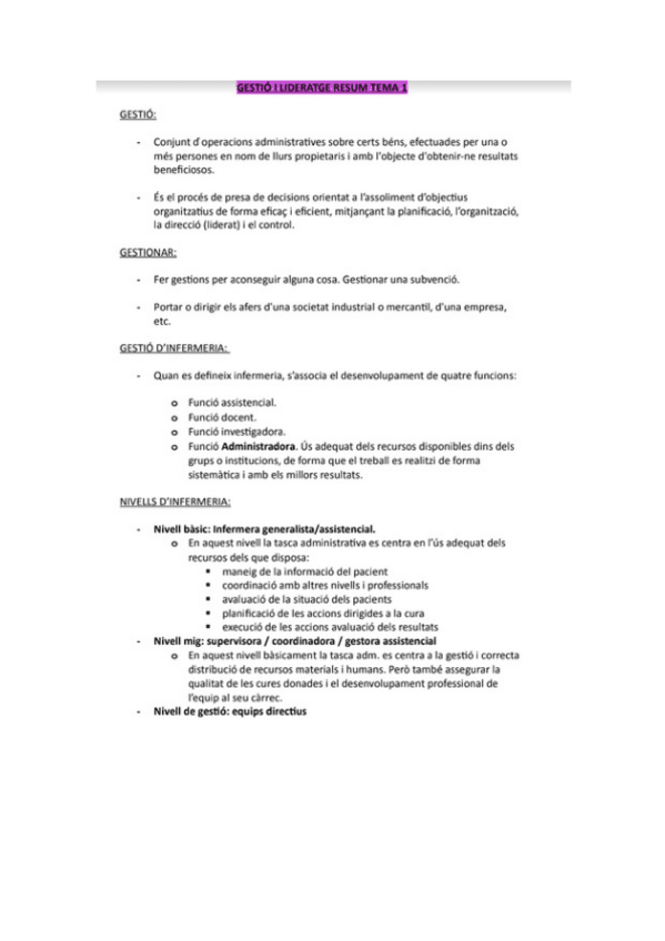 Apuntes de la asignatura de gestión de enfermería. 1r bloque.