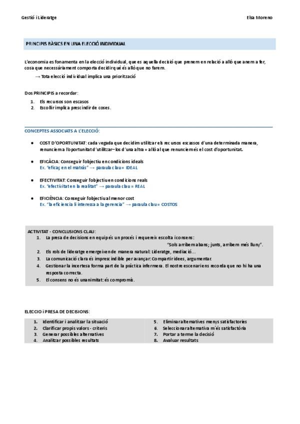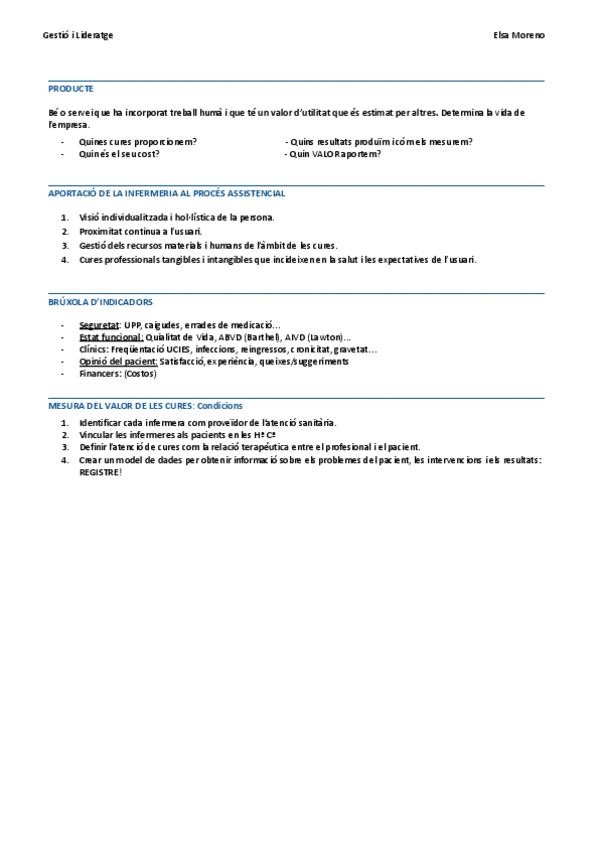 Apunts complets i ordenats per blocs i temes de Gestió i Lideratge Infermer 2n Infermeria UB