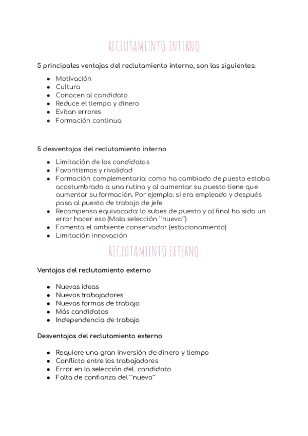 En este documento podrás encontrar 5 ventajas y 5 inconvenientes del reclutamiento externo e interno.