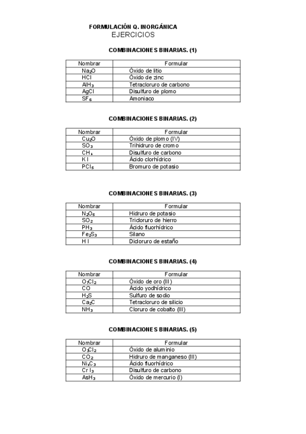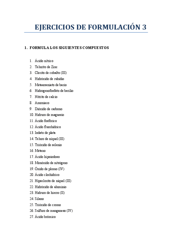 Ejercicios de formulación