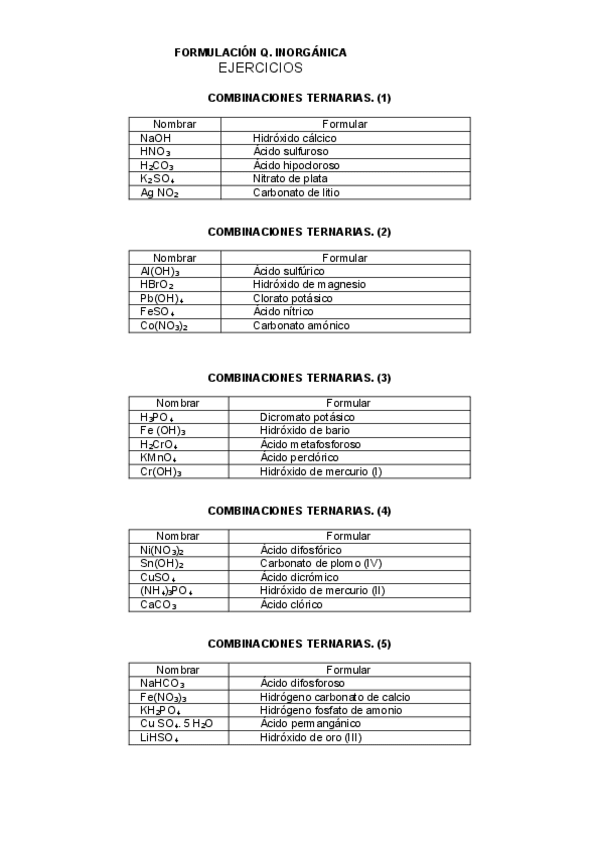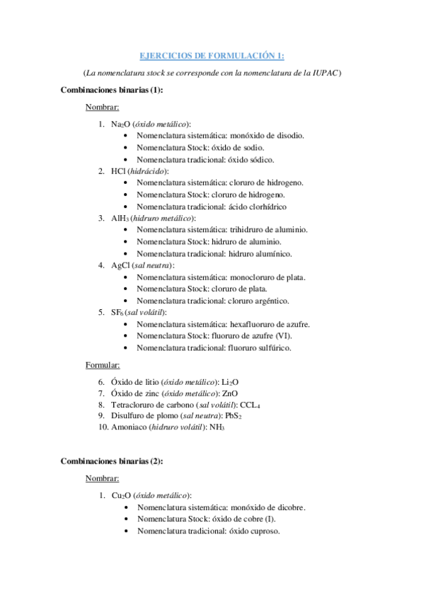Ejercicios de formulación