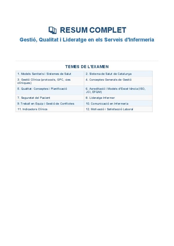 He publicado nuevos apuntes de 4º Gestión, Calidad y Liderazgo en los Servicios de Enfermería: Temari per estudiar