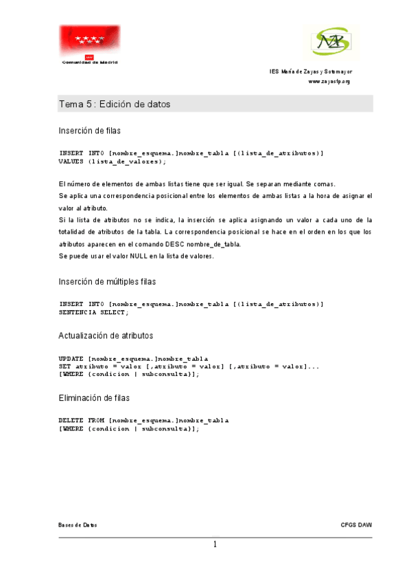 He publicado nuevos apuntes de Gestión de bases de datos: Inserción filas en tablas