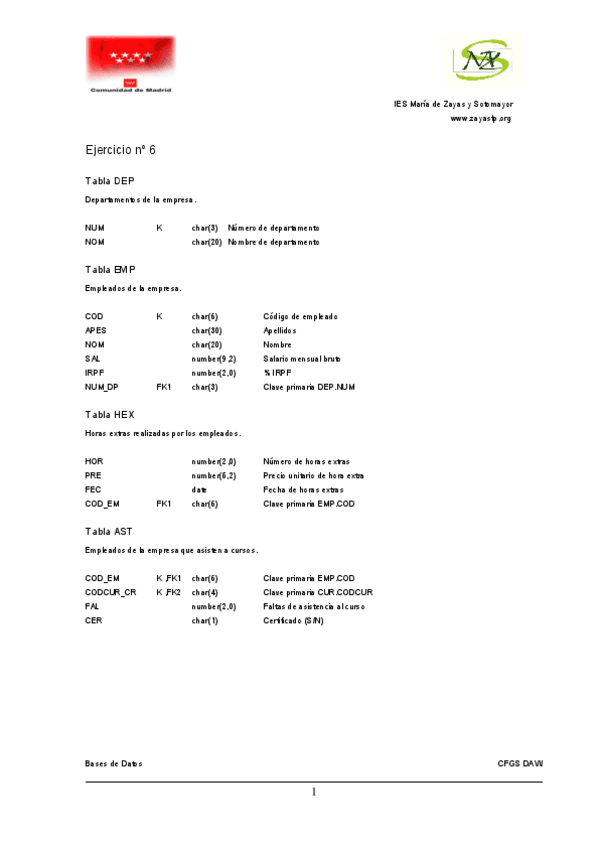 Ejercicios consulta y creación de tablas