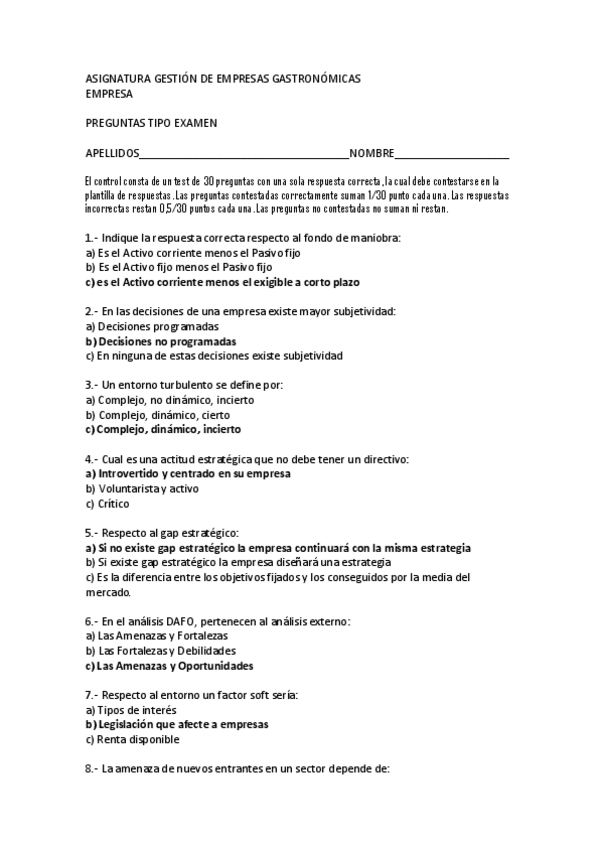 He publicado nuevos examenes de 1º Gestión de empresas gastronómicas: Preguntas-tipo-examen-con-Solucion.pdf