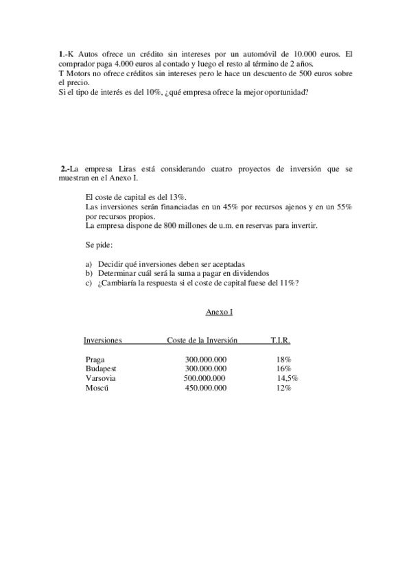 examenes parte análisis de inversiones