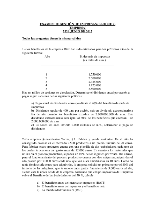 He publicado nuevos examenes de 2º Gestión de Empresas: examenes clase