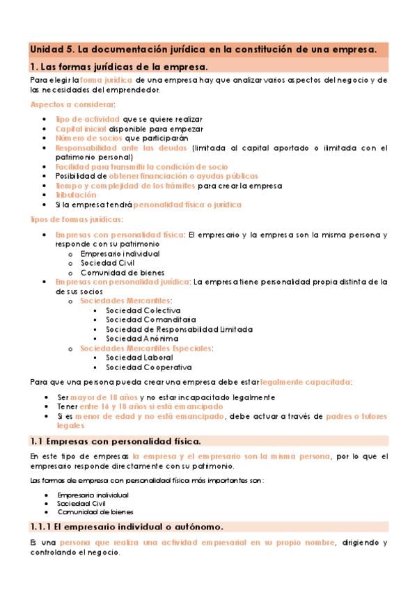 Las formas jurídicas más habituales en la empresa. Los trámites de constitución y puesta en marcha de una empresa, así como la documentación básica asociada a dichos trámites. El papel de los fedatarios en la constitución y el funcionamiento de las empres
