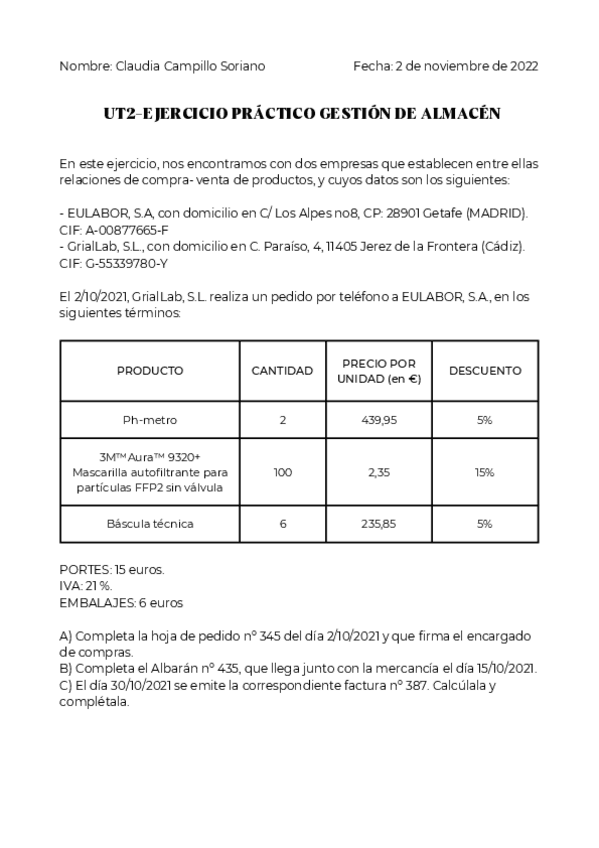 He publicado nuevos ejercicios de Gestión de muestras biológicas: Ejercicio Gestión de Almacén | U2 - Los laboratorios de análisis clínicos.pdf