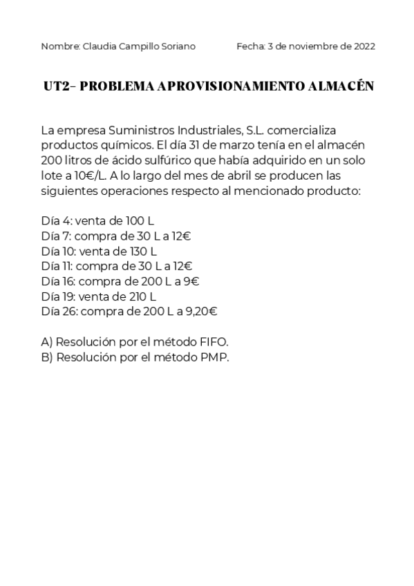 He publicado nuevos ejercicios de Gestión de muestras biológicas: Problemas FIFO y PMP | U2 - Los laboratorios de análisis clínicos.pdf