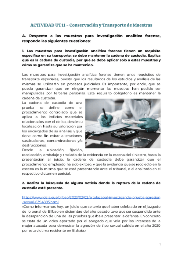 He publicado nuevos trabajos de Gestión de muestras biológicas: Actividad - muestras para investigación analítica forense y biobancos | UT11 - Conservación y transporte de muestras.pdf