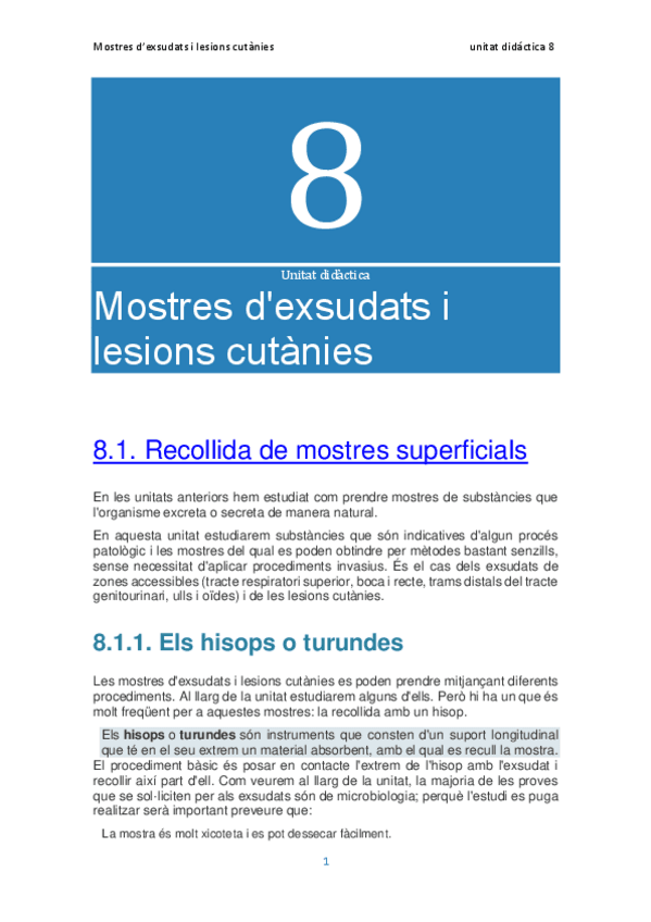 He publicado nuevos apuntes de Gestión de muestras biológicas: TEMA-8-EXUDATS-I-MOSTRES-CUTANIES-.pdf