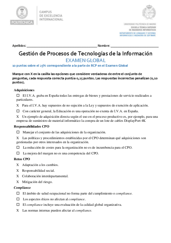 He publicado nuevos examenes de 4º GESTION DE PROCESOS DE TECNOLOGIAS DE LA INFORMACION: PrimerParcialGPTI.pdf
