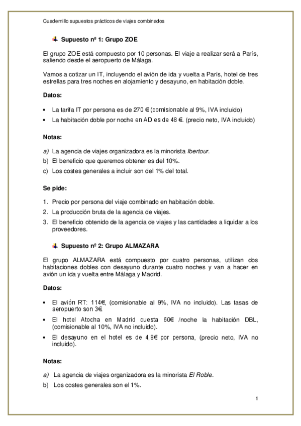 He publicado nuevos apuntes de Gestión de productos turísticos: Supuestos viajes combinados