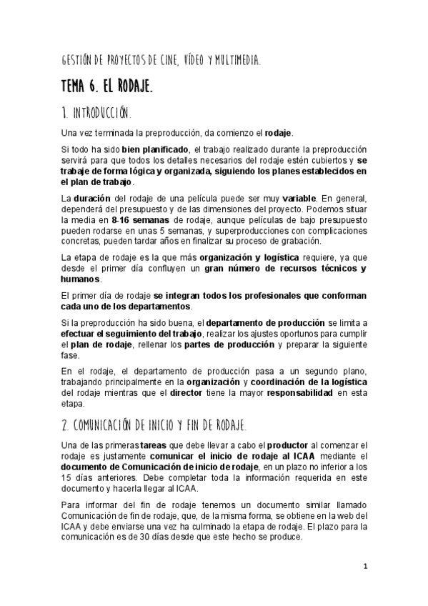He publicado nuevos examenes de Gestión de proyectos de cine, vídeo y multimedia: Tema-6-el-rodaje.pdf