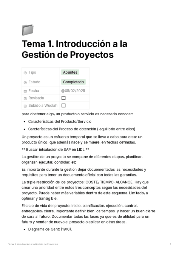 He publicado nuevos apuntes de 3º Gestión de Proyectos: Tema1.introduccionalagestindeproyectos.pdf