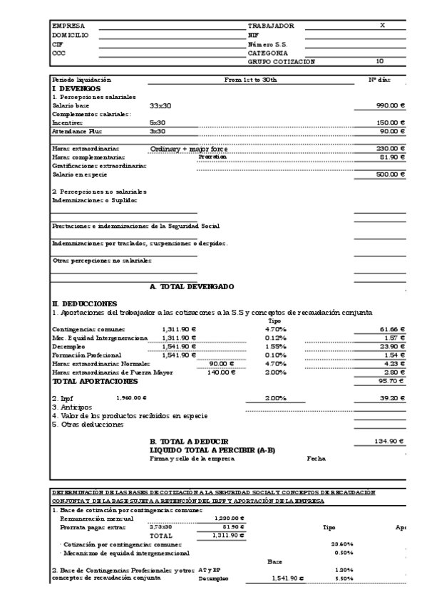Salario Nómina Bases de cotización a la Seguridad Social Tipos de cotización Calculo de la retención a la cuenta del IRPF