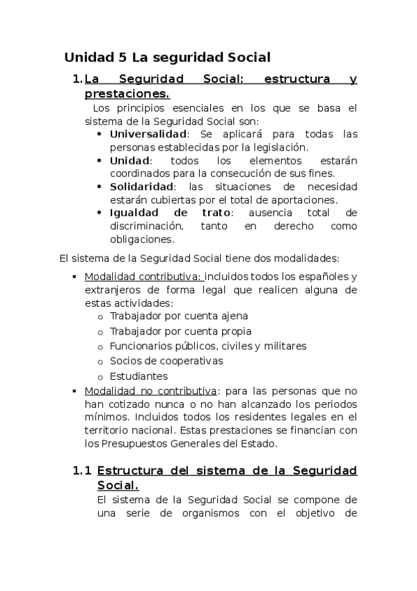 Apuntes de la asignatura de RRHH de 2º de la Unidad 5 La Seguridad Social