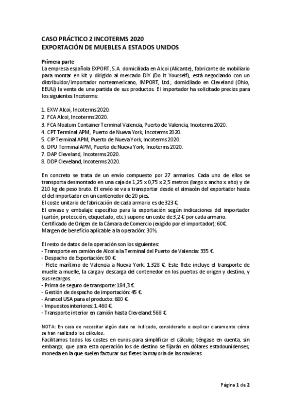 He publicado nuevos ejercicios de 4º Gestión del Comercio Exterior: T1-caso.pdf