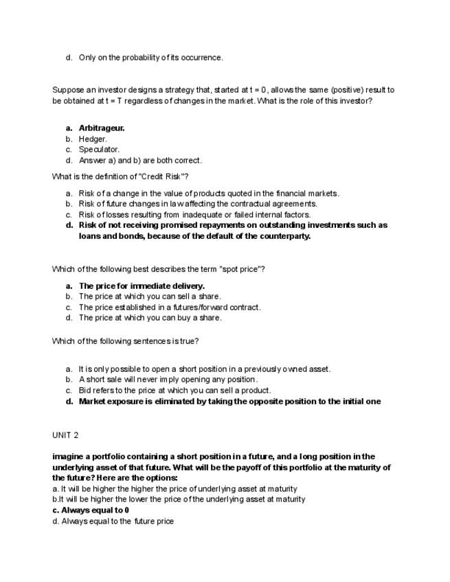 He publicado nuevos test de 4º Gestión del Riesgo Financiero: Unit 2 Quiz