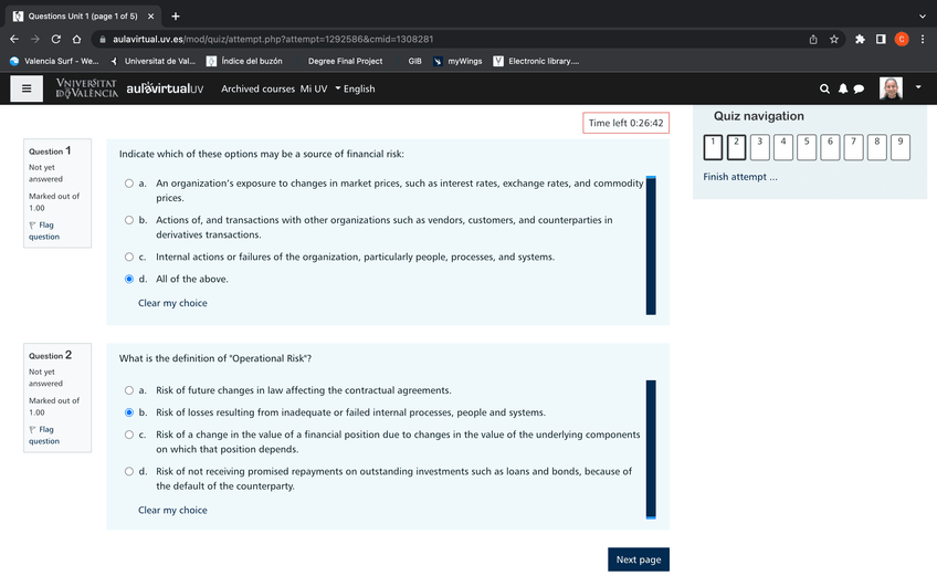 He publicado nuevos test de 4º Gestión del Riesgo Financiero: Unit 1 Quiz