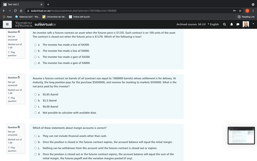 He publicado nuevos test de 4º Gestión del Riesgo Financiero: Unit 4 Quiz