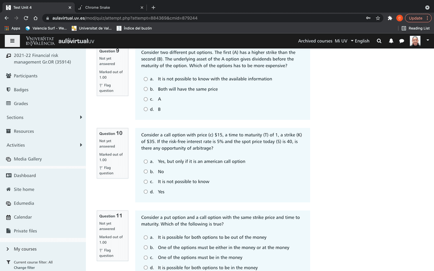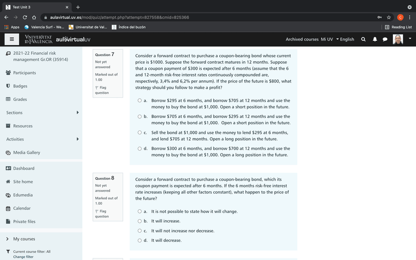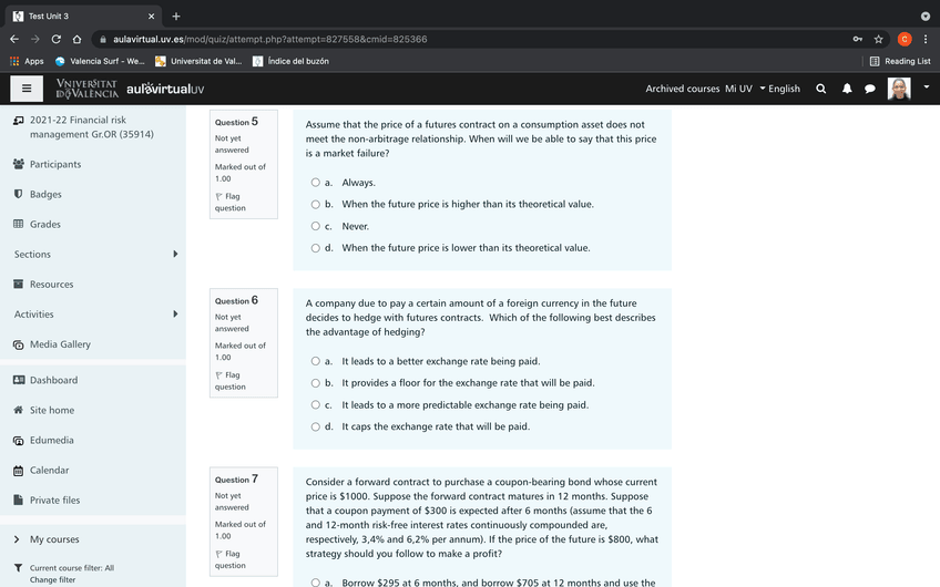 He publicado nuevos test de 4º Gestión del Riesgo Financiero: Unit 3 Quiz