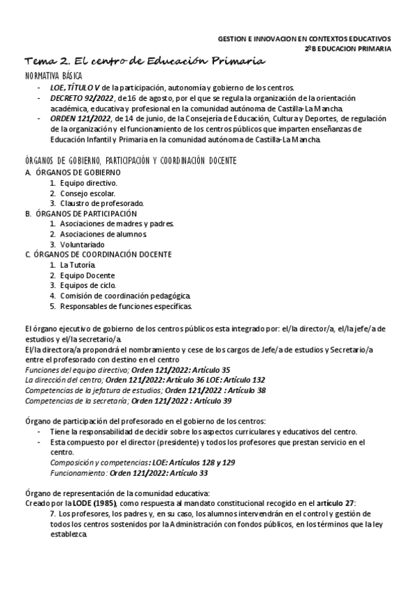 He publicado nuevos apuntes de 2º GESTIÓN E INNOVACIÓN EN CONTEXTOS EDUCATIVOS: TEMA 2 EL CENTRO DE EDUCACION PRIMARIA.pdf