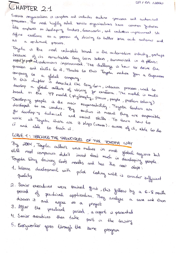TOYOTA CHAPTERS (SUMMARIES)